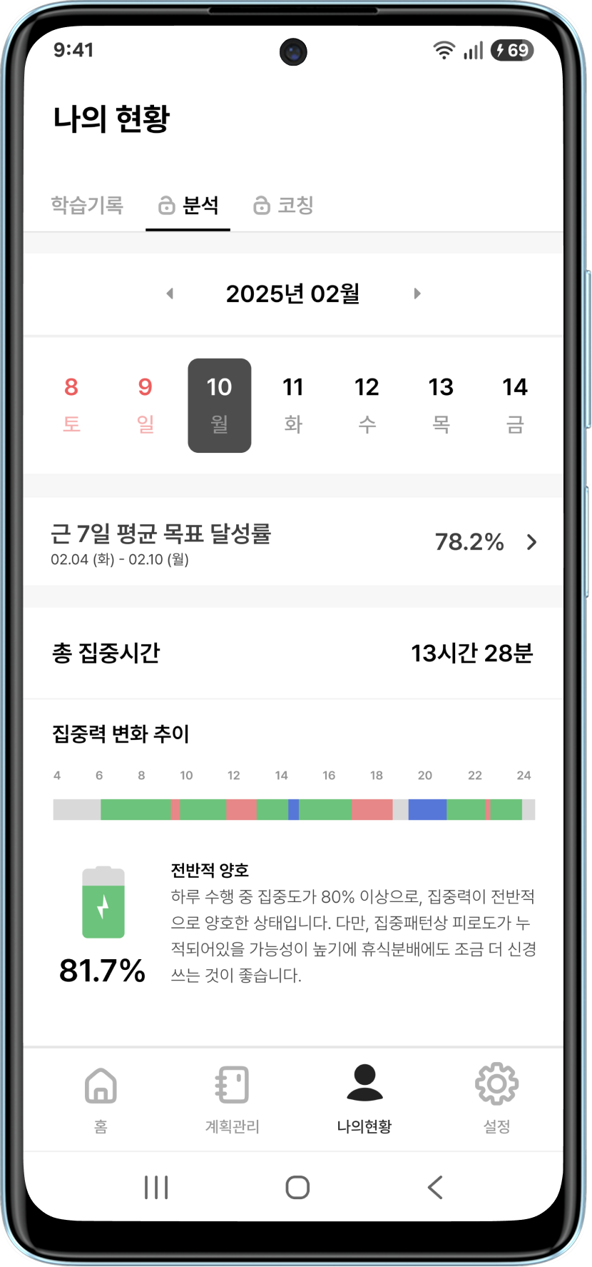 추가로 당신의 현재 상태가 어떤지에 대한 분석을 통해 다음날 계획을 더 효율적으로 짤 수 있습니다.